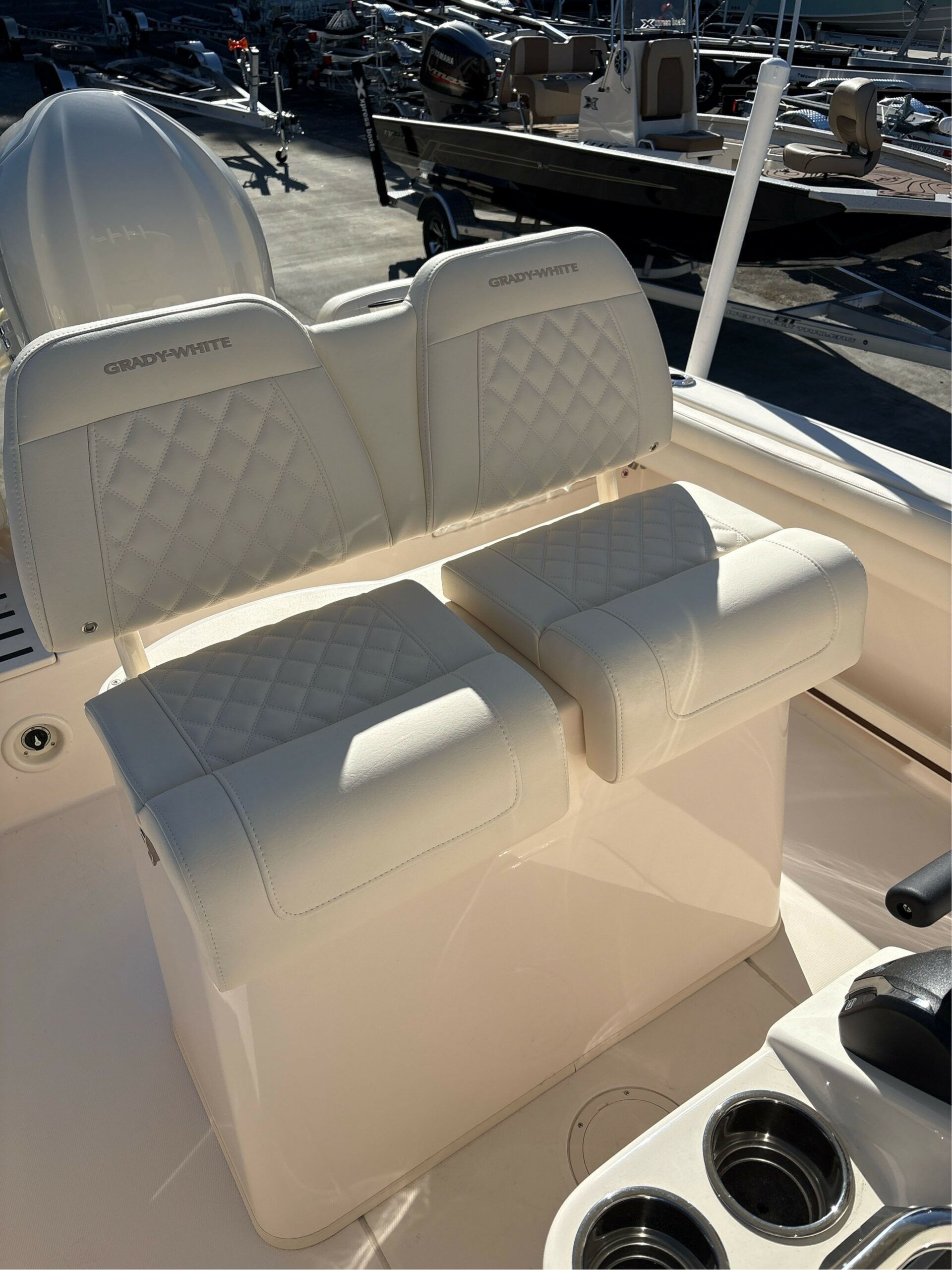 Console Accessory Outlet – 12V Compass Cooler/ice box – 29-qt. (27 l) Insulated Storage box Under Forward Console Seat Drink Holders – Stainless Steel (2) Flush Mount Electronics Area Footrest – Molded Console Footrest