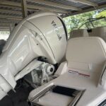 Seating – Port & Starboard Bow Cushioned Seating Steering – Hydraulic Tilt Steering Wheel – 316 Grade Stainless Steel w/Knob Stereo System w/Waterproof Touch Screen Display, AM/FM Tuner, Wi-Fi & Bluetooth Connectivity & Remote Unit; Speakers – Bow (2), Helm (2) Stern Eyes – 316 Grade Stainless Steel Storage – Aft Lift Out Boxes (2) Storage – Forward Anchor Locker w/Rode Storage Storage – Lockable Starboard Console Compartment w/Light & Storage Pocket w/Tackle Trays (2) Swim Platforms – Aft Port & Starboard Extensions w/Starboard Ladder Vista Top w/Front, Side Curtains & Boot (Black) Windshield – Walk-Through Tempered Glass Windshield Wiper (Starboard)